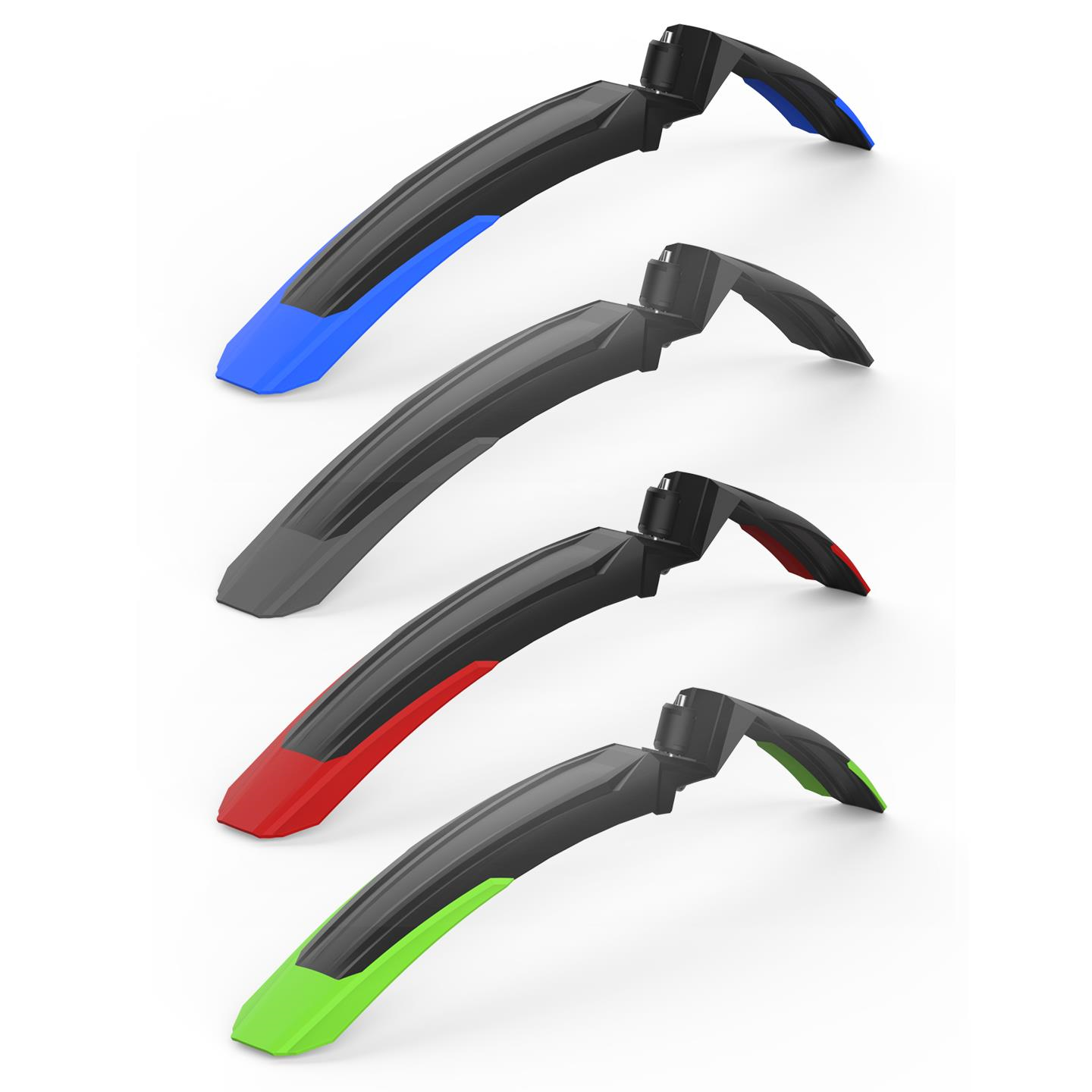 Apărătoare de noroi frontală în stil enduro, pentru biciclete de munte de 27,5"; montaj fără scule; potriviți și îndepărtați în câteva secunde cu eliberare rapidă; include adaptor (pentru tuburi directoare cu diametrul interior de 18 – 35 mm); finisaj mat-strălucitor; Detalii din cauciuc moale