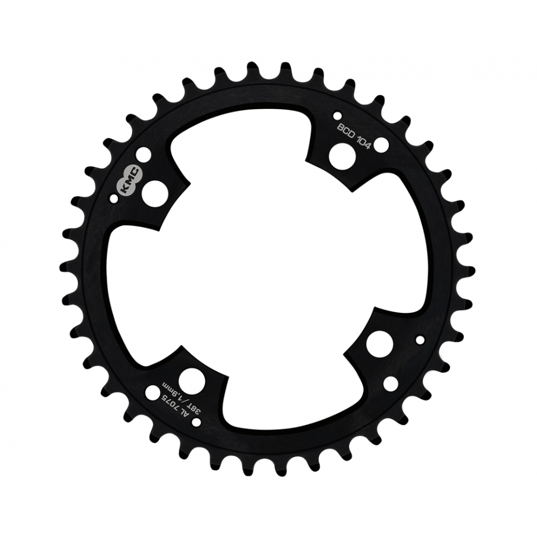 Placa pedalier KMC 38T 1.9mm BCD104 AL7075 Neagra