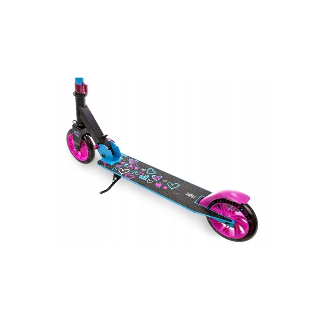• Scooterul Raven Elena 145mm este alegerea perfectă pentru fete cu o înălțime cuprinsă între aproximativ 106 și 154 cm (adica între aproximativ 4 și 12 ani), în special pentru cele care trec de la scuterele cu trei roți. Reglarea în 4 trepte a înălțimii ghidonului, pe care marca Raven o oferă ca una dintre puținele companii, vă va permite să vă ajustați perfect la înălțimea dvs. și cu siguranță va fi suficientă pentru mai multe sezoane. Geometria furcii adecvată combinată cu o bară ușor înclinată sunt caracteristicile speciale ale scuterelor Raven, care facilitează mersul chiar și pentru un adept al scuterelor tânăr. Platforma la o înălțime de 8 cm față de sol este înălțimea perfectă pentru începători, care nu necesită multă energie pentru a împinge și, în același timp, previne prinderea accidentală pe trotuarele neuniforme ale orașului. Suntem convinși că copilul tău va iubi să meargă cu Elena de la primele metri.