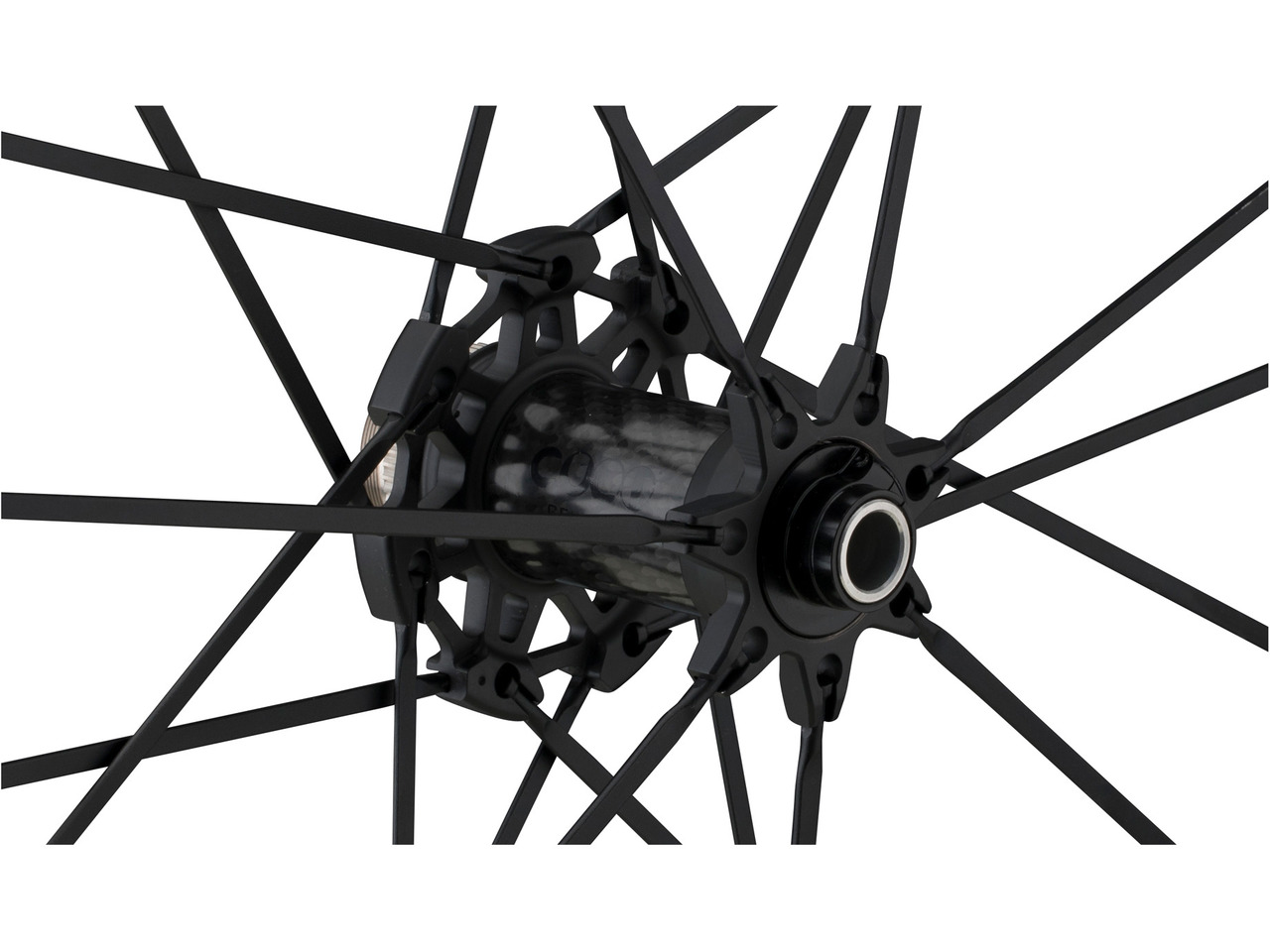 Carbon hubs: 90° braided fibre to better balance the torsional forces in play during pedalling