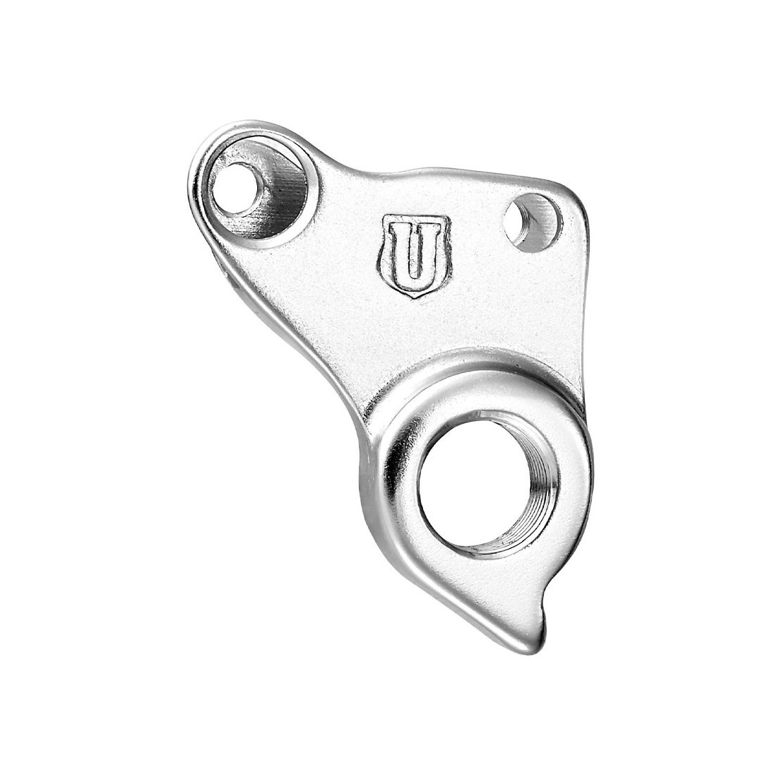 Ureche de schimbator din aluminiu 6061 forjat la rece, culoare argintie. Suruburile de prindere sunt incluse in pret.