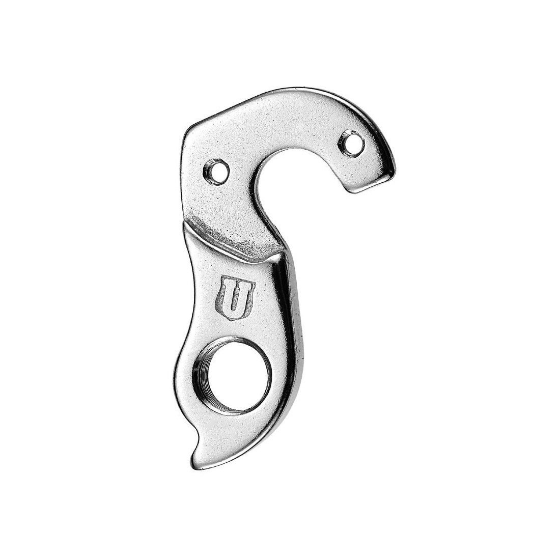 Ureche de schimbator din aluminiu 6061 forjat la rece, culoare argintie. Suruburile de prindere sunt incluse in pret.